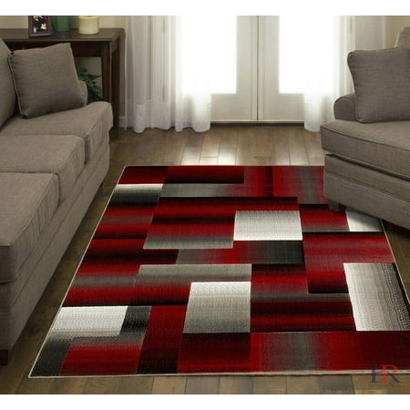 Hr Red Silver Grey Abstract Modern Geometric Contemporary Mixed Colors Patterns Design Area Rug